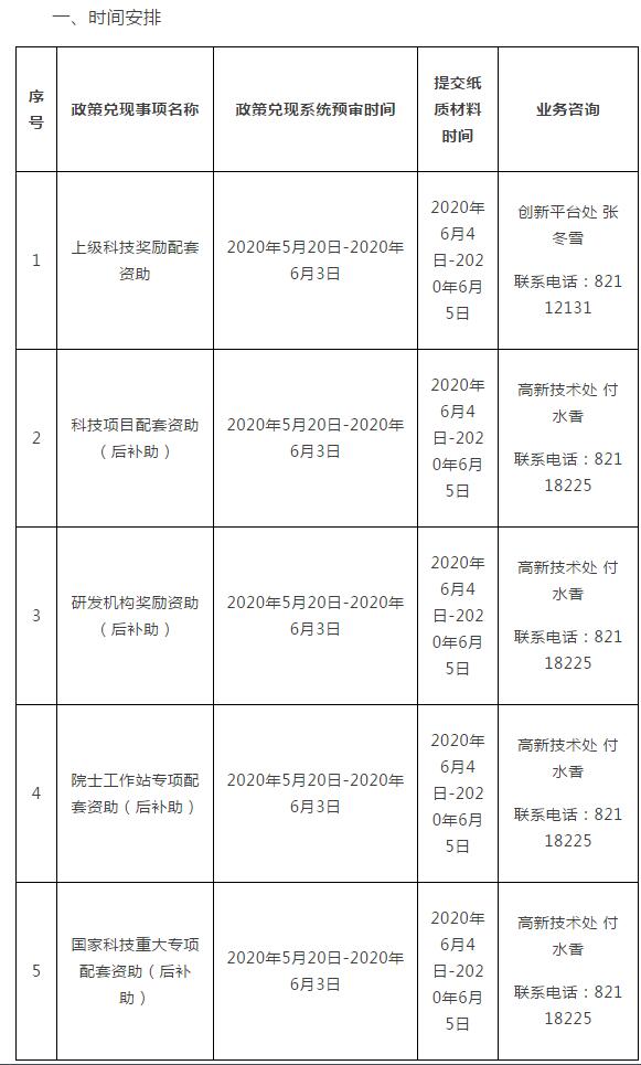 根據(jù)我局工作安排,現(xiàn)啟動(dòng)2020年上半年科技項(xiàng)目(獎(jiǎng)勵(lì))配套資金資助集中受理工作。本批項(xiàng)目涉及上級(jí)科技獎(jiǎng)勵(lì)配套資助、科技項(xiàng)目配套資助(后補(bǔ)助)、研發(fā)機(jī)構(gòu)獎(jiǎng)勵(lì)資助(后補(bǔ)助)、院士工作站專項(xiàng)配套資助(后補(bǔ)助)、國家科技重大專項(xiàng)配套資助(后補(bǔ)助)5個(gè)政策兌現(xiàn)事項(xiàng)。本次受理事項(xiàng)辦理依據(jù)均為2017版“黃金十條”及“美玉十條”政策,政策有效期內(nèi)符合條件的項(xiàng)目,請(qǐng)按辦事指南要求如期提交材料,如本次未按時(shí)提交,今后不再受理?,F(xiàn)通知如下: