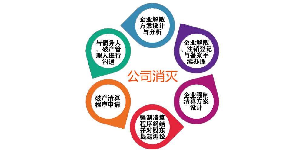 公司消滅涉及企業(yè)解散方案設(shè)計(jì)與分析,企業(yè)解散、注銷登記與備案手續(xù)辦理,企業(yè)解散清算,企業(yè)安置員工,與稅務(wù)、工商部門(mén)溝通;企業(yè)強(qiáng)制清算方案設(shè)計(jì),企業(yè)強(qiáng)制清算申請(qǐng),強(qiáng)制清算程序終結(jié)并對(duì)股東提起訴訟等;破產(chǎn)清算方案設(shè)計(jì),破產(chǎn)清算財(cái)產(chǎn)調(diào)查,破產(chǎn)清算程序申請(qǐng),債權(quán)登記,債權(quán)人會(huì)議,與債務(wù)人、破產(chǎn)管理人進(jìn)行溝通等。