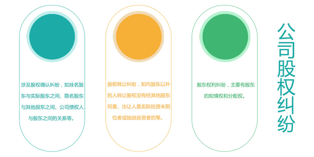 股權(quán)糾紛主要有股權(quán)確認糾紛、股權(quán)轉(zhuǎn)讓糾紛、股東權(quán)利糾紛。我司提供專業(yè)的法律服務(wù)咨詢?yōu)槟峁I(yè)的合同、法律意見書等。